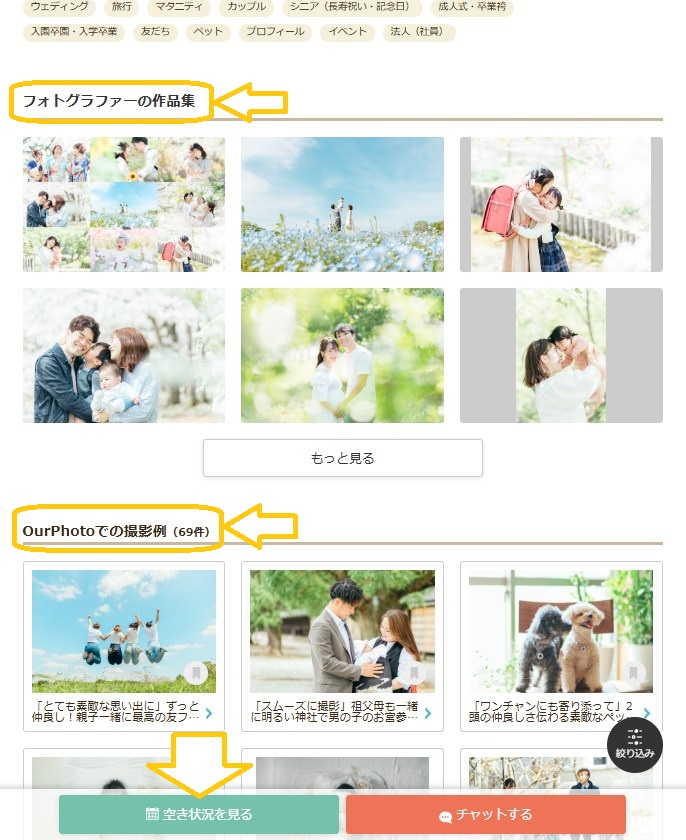 作品集や口コミなどを見て、カメラマンを決めたら、空き状況を確認し、希望の日時で予約をいれます。